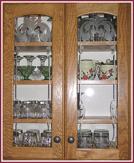 picture of the etched doors to finish our kitchen project. We are very happy